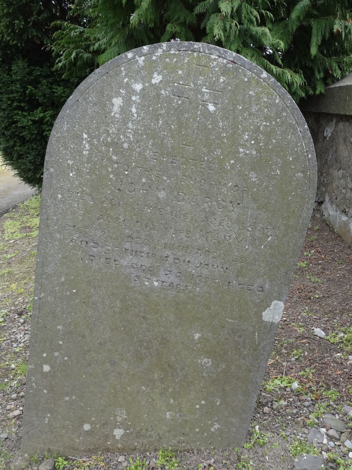 Erected to the memory of John Darcy, died 20th June 1867, aged 55 years.Also his wife Mary, died 2nd December 1881, aged 59 years.And of their son John, died December 30th 1899 aged 37 years.