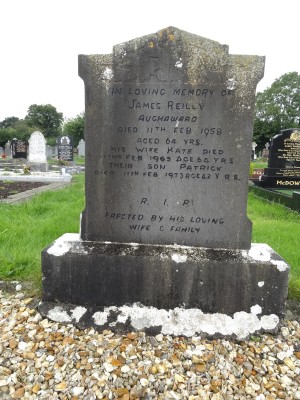 In loving memory ofJames ReillyAughawarddied 11th Feb 1958aged 64 yrsHis wife Kate died11th Feb 1965 aged 64 yrsTheir son Patrickdied 11th Feb 1973 aged 42 yrs