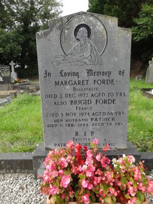 In loving memory ofMargaret FordeBallinaleedied 2 Dec 1972 aged 70 yrsAlso Brigid FordeFrancedied 3 Nov 1974 aged 66 yrsHer husband Patrickdied 11 Feb 1982 aged 75 yrs