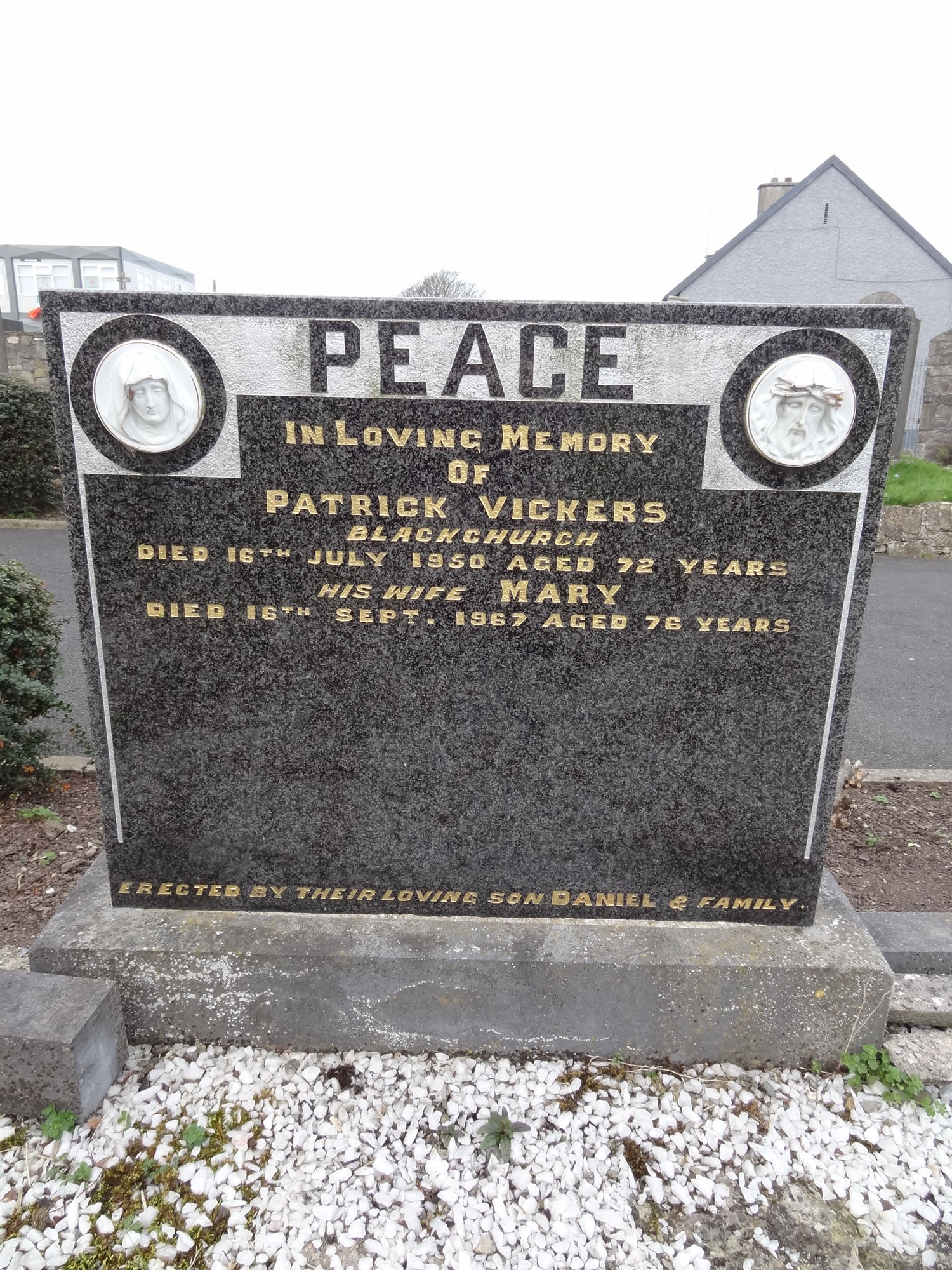 PEACE In Loving Memory Of Patrick Vickers DIED 16th JULY 1950 AGED 72 YEARS his wife MARY DIED 16th SEPT. 1967 AGED 76