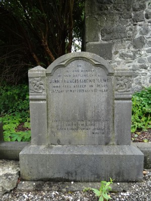 In loving memory of our darling sonJohn Francis (Jackie) Lewiswho fell asleep in Jesus26th day of may 1919 aged 12 years