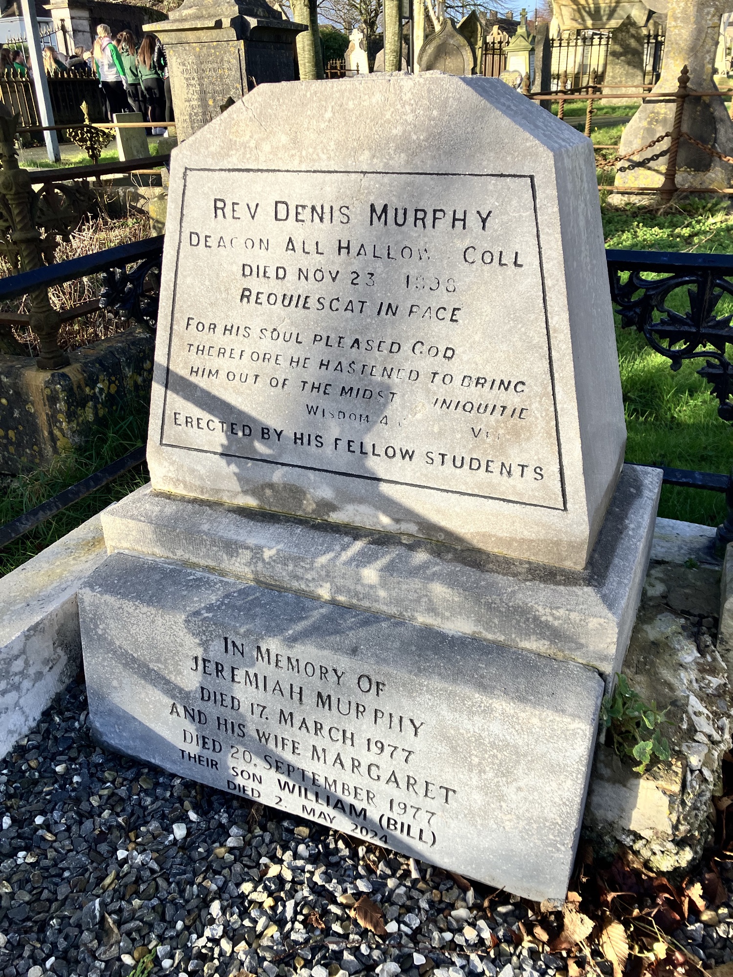 REV DENIS MURPHY DEACON ALL HALLOW COLL DIED NOV 23 1898 REQUIESCAT IN PACE FOR HIS SOUL PLEASED GOD THEREFORE HE HASTENED TO BRING HIM OUT OF THE MIDST INIQUITY WISDOM 4 VII ERECTED BY HIS FELLOW STUDENTS