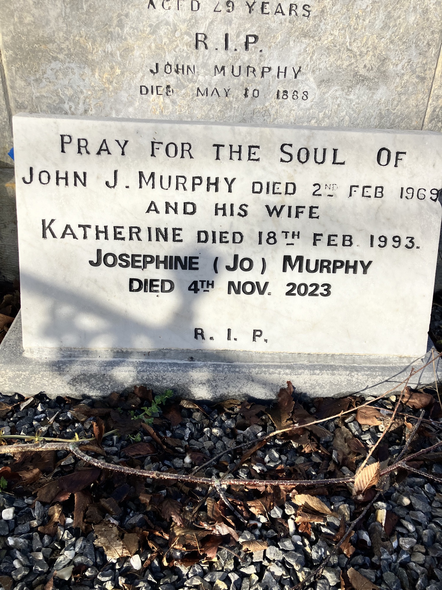 PRAY FOR THE SOUL OF JOHN J MURPHY DIED 2ND FEB 1969 AND HIS WIFE KATHERINE DIED 18TH FEB 1993 JOSEPHINE (JO) MURPHY DIED 4TH NOV 2023 R.I.P.
