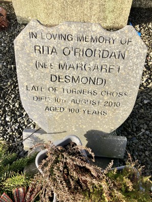 IN LOVING MEMORY OF RITA O'RIORDAN (NEE MARGARET DESMOND) LATE OF TURNERS CROSS DIED 10TH AUGUST 2010 AGED 100 YEARS