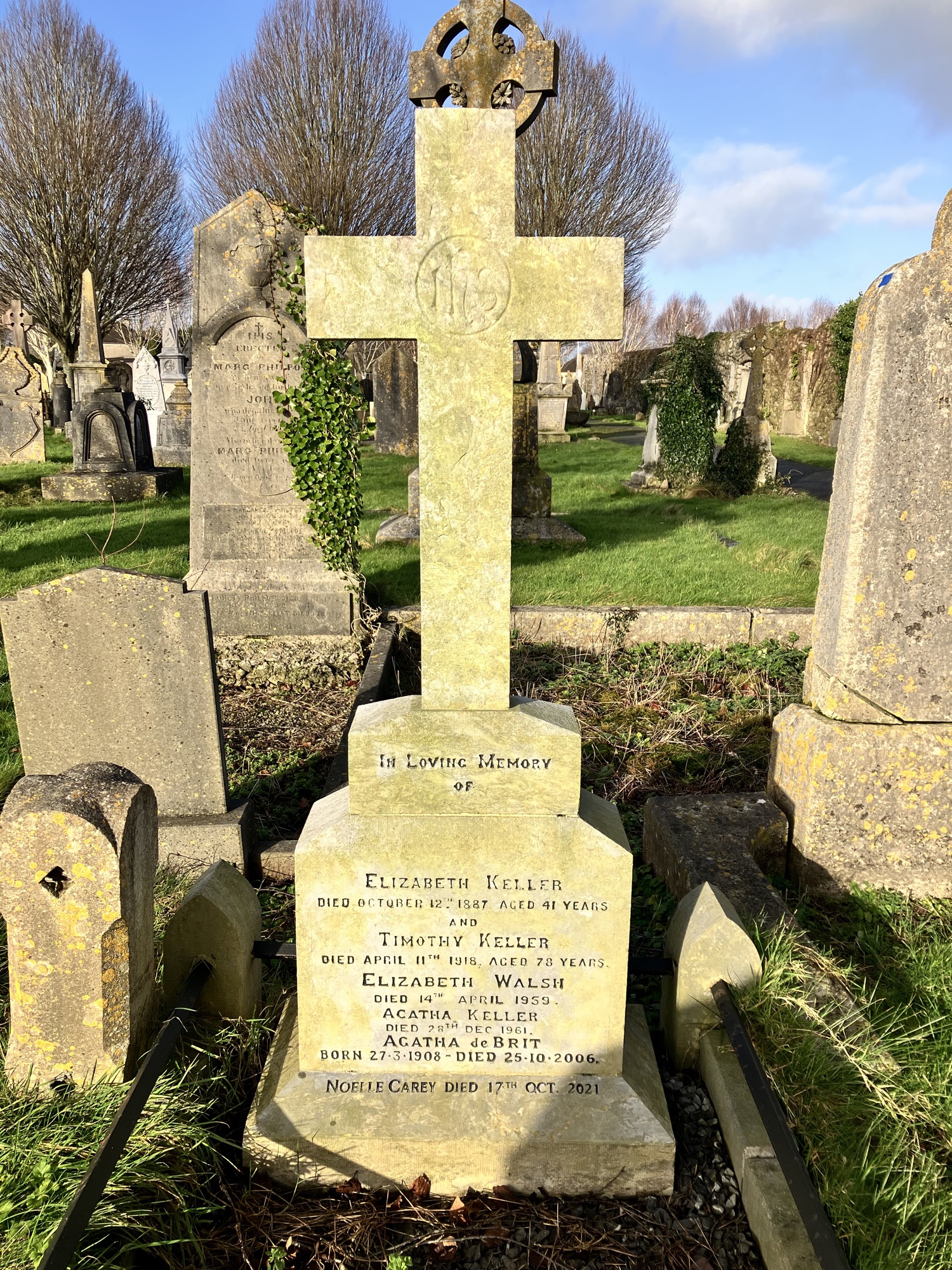 In loving memory of Elizabeth Keller October 12th 1887 aged 41 years and Timothy Keller died April 11th 1919 aged 78 years Elizabeth Walsh died 14th April 1959 Agatha Keller died 28th Dec 1961