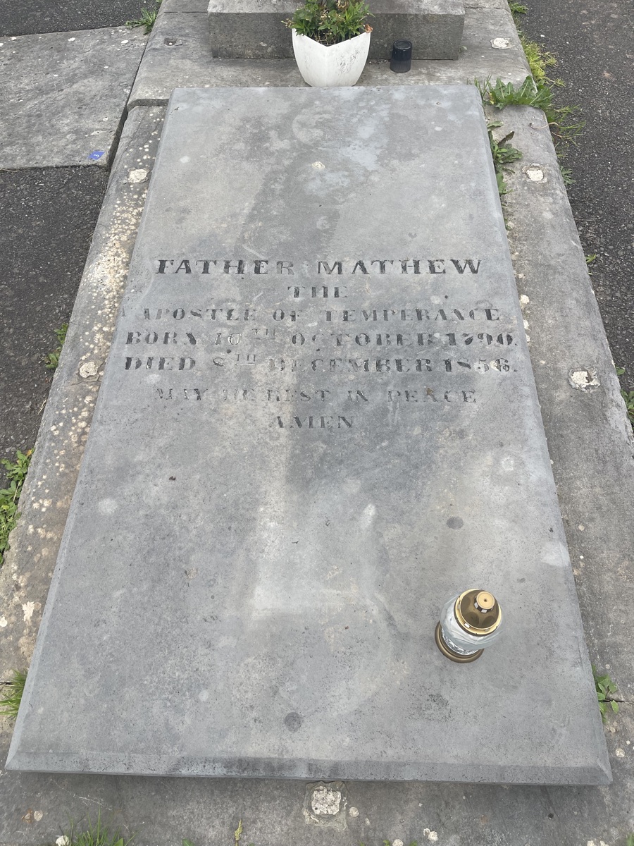 Erected AD 1830 The very Rev. Theo Mathew Father Mathew The Apostle of Temperance Born 10th October 1790 Died 8th December 1856 May he rest in peace Amen