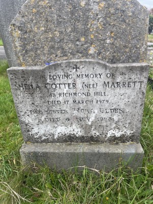 In loving memory of SHEILA Cotter (nee) PREVETT 48 Richmond Hill. Died 17 March 1979 Her sister Nora Olden Died 4 Nov 1996