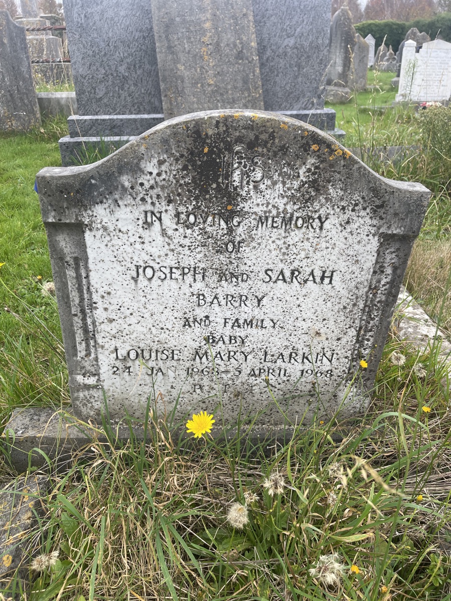 IN LOVING MEMORY JOSEPH AND SARAH BARRY AND FAMILY BABY LOUISE MARY LARKIN 24 JAN 1968 TO APRIL 1968 RIP