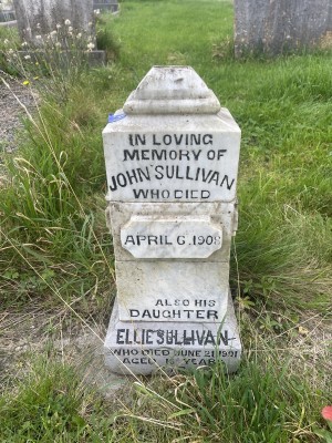 IN LOVING MEMORY OF JOHN SULLIVAN WHO DIED APRIL 6 1908 ALSO HIS DAUGHTER ELLIE SULLIVAN WHO DIED JUNE 21 1901 AGED 15 YEARS R.I.P.