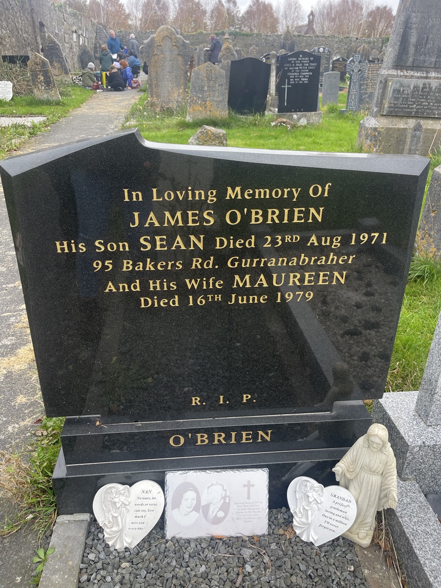 In loving memory of James O'Brien His son Sean died 23rd Aug. 1927 of 85 Bakers Rd, Gurranabraher And his wife Maureen Died 16th June 1979 R.I.P