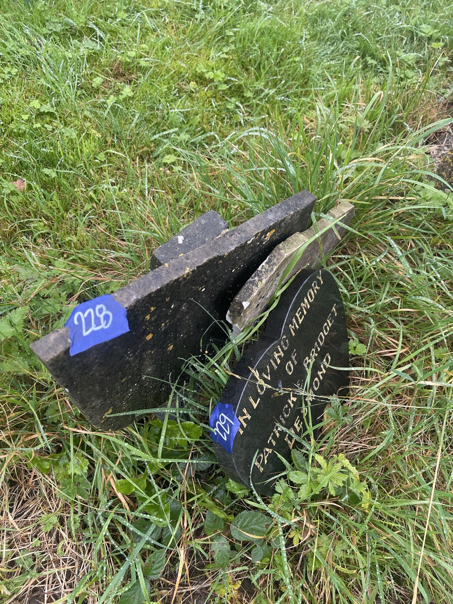 IN Loving memory of Patrick Desmond Died 30 April 1983 his wife Bridget Died 17 July 1985 Late of 75 Cathedral rd Broken plaque