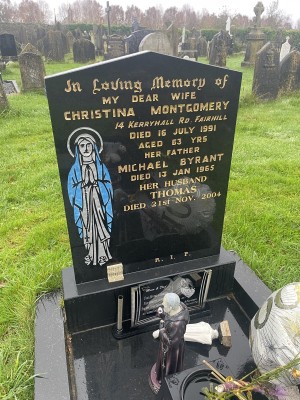 In Loving Memory of my Dear Wife Christina Montgomery 14 Kerryhall Rd Farthill Died 16 July 1991 Aged 63 years Her Father Michael Brant Died 15 Jan 1965 Her Husband Thomas Died 21st Nov 2004 R.I.P