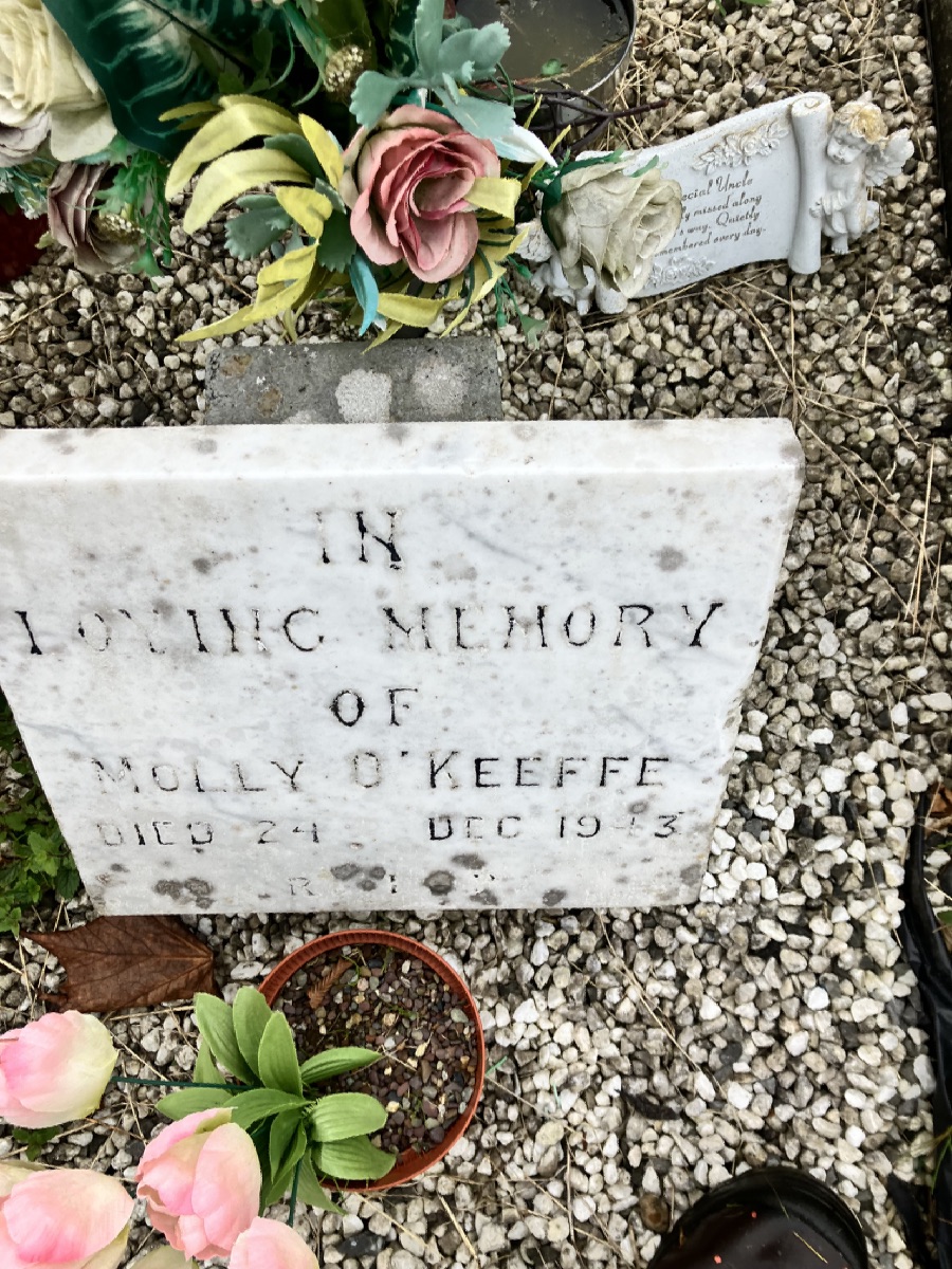 In Loving Memory of Ellen O'Keeffe 1925 Molly O'Keeffe 1943 Joe O'Keeffe 1947 Tessie Twomey 24-1-1953 John Joe O'Keeffe 22-7-1958 Kitty O'Keeffe 1-6-1978 Gerry O'Leary 5-3-1981