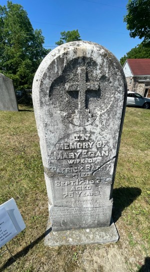 IN MEMORY OF MARY EGAN, WIFE OF PATRICK BARRY DIED SEPT. 17TH 1877 AGED 75 YEARS Pray for me. May her soul rest in peace.