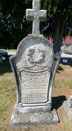 IN MEMORY OF WILLIAM CHAS. O'BRIEN WHO DEPARTED THIS LIFE Feb. 29, 1872. AGED 19 YEARS. A treasure but removed. May his soul rest in peace Amen. Also his sster Margaret, Died Dec 18 1862 Aged 11 mo's