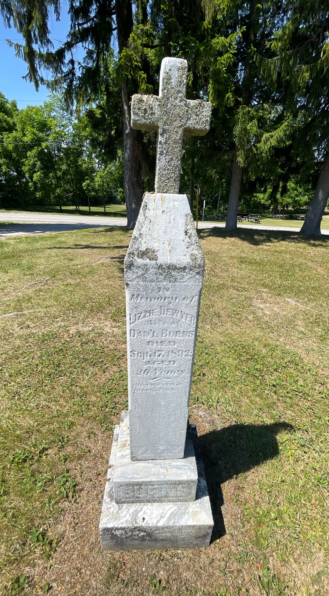 In memory of Lizzie Dewyer, wife of Dan'l BURNS, Died Sep. 17, 1892, age 26 years May her soul rest in peace Amen.
