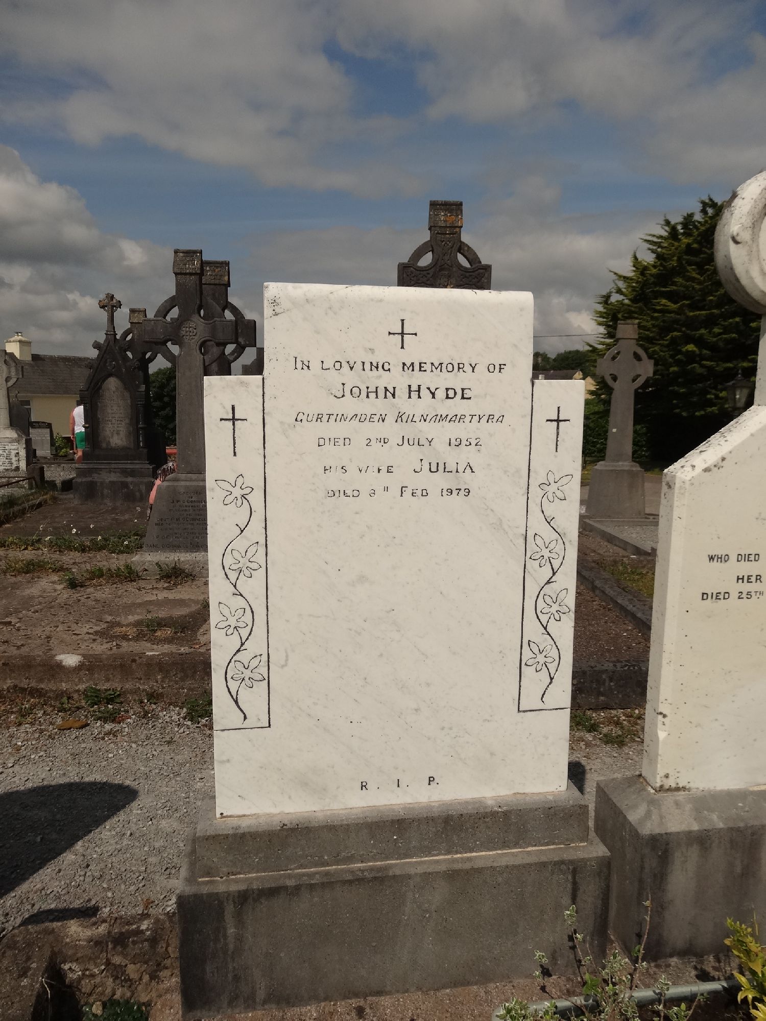In Loving Memory ofJOHN HYDEGurtinaden, KilnamartyraDied 2nd July 1952His wife JULIADied 8th Feb. 1979