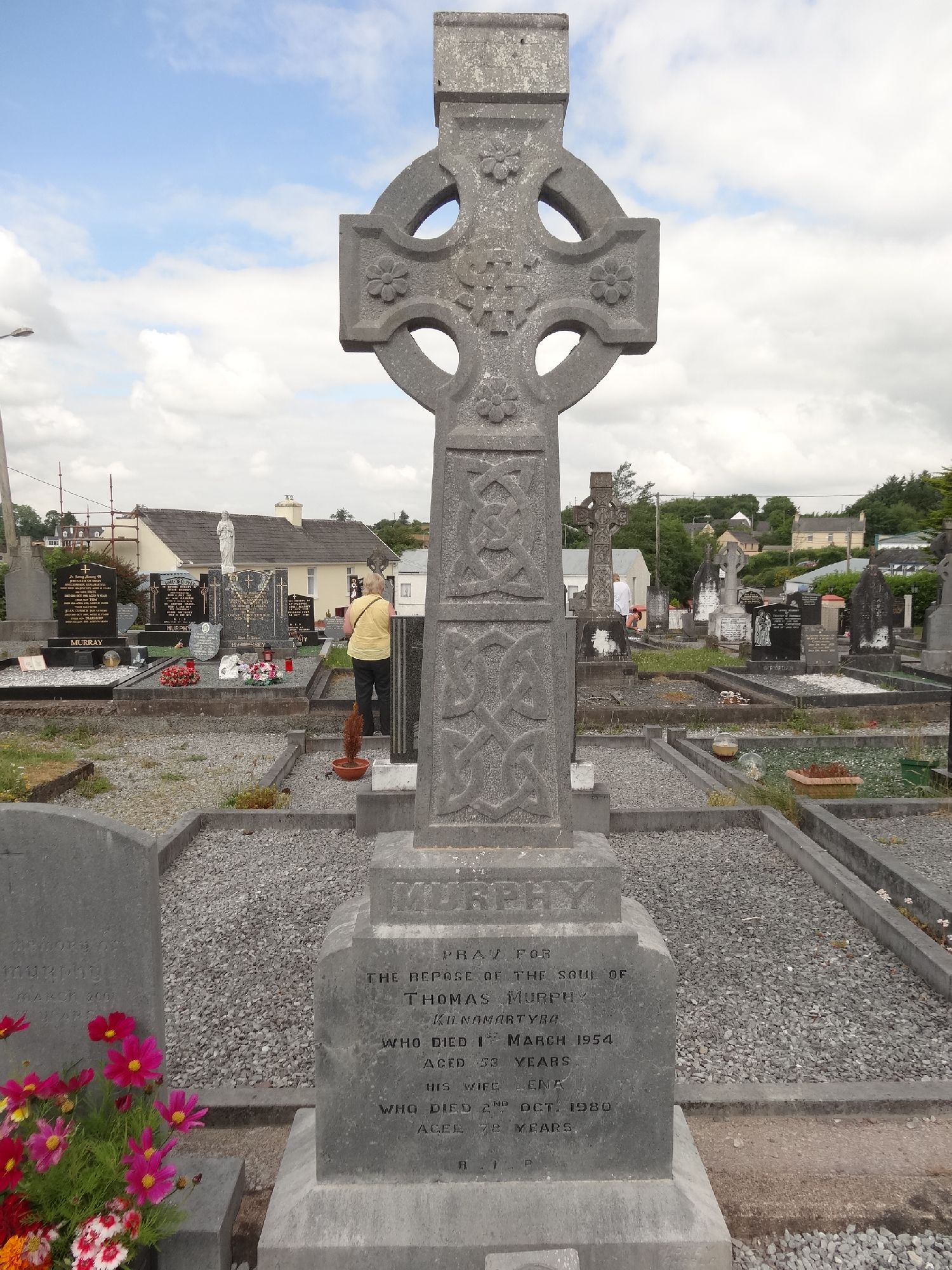 Pray forthe repose of the soul ofTHOMAS MURPHYKilnamartyrawho died 1st March 1954aged 53 yearsHis wife LENAwho died 2nd Oct. 1980aged 78 years