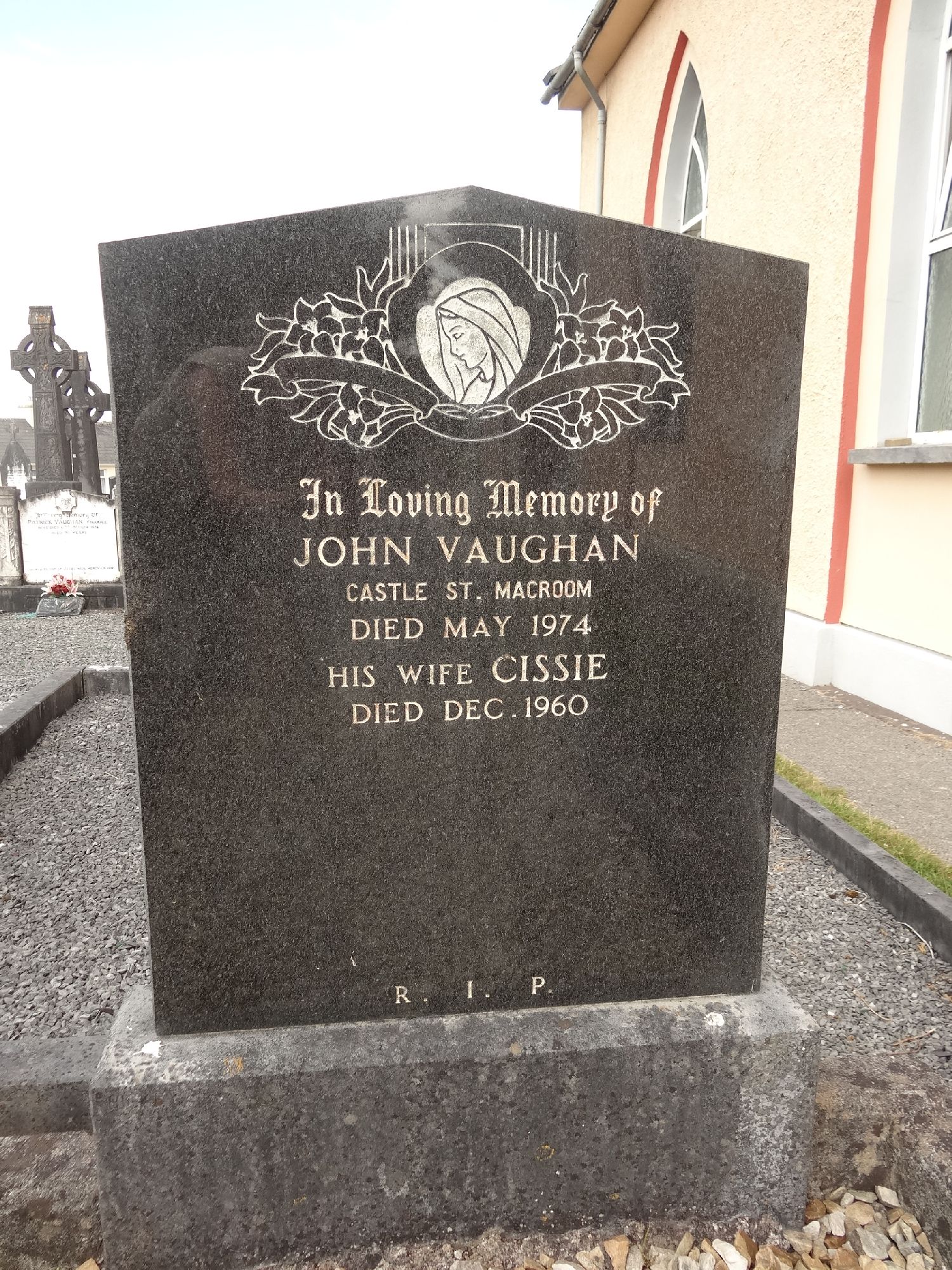 In Loving Memory of JOHN VAUGHANCastle Street, MacroomDied May 1974His wife CISSIEdied Dec. 1960