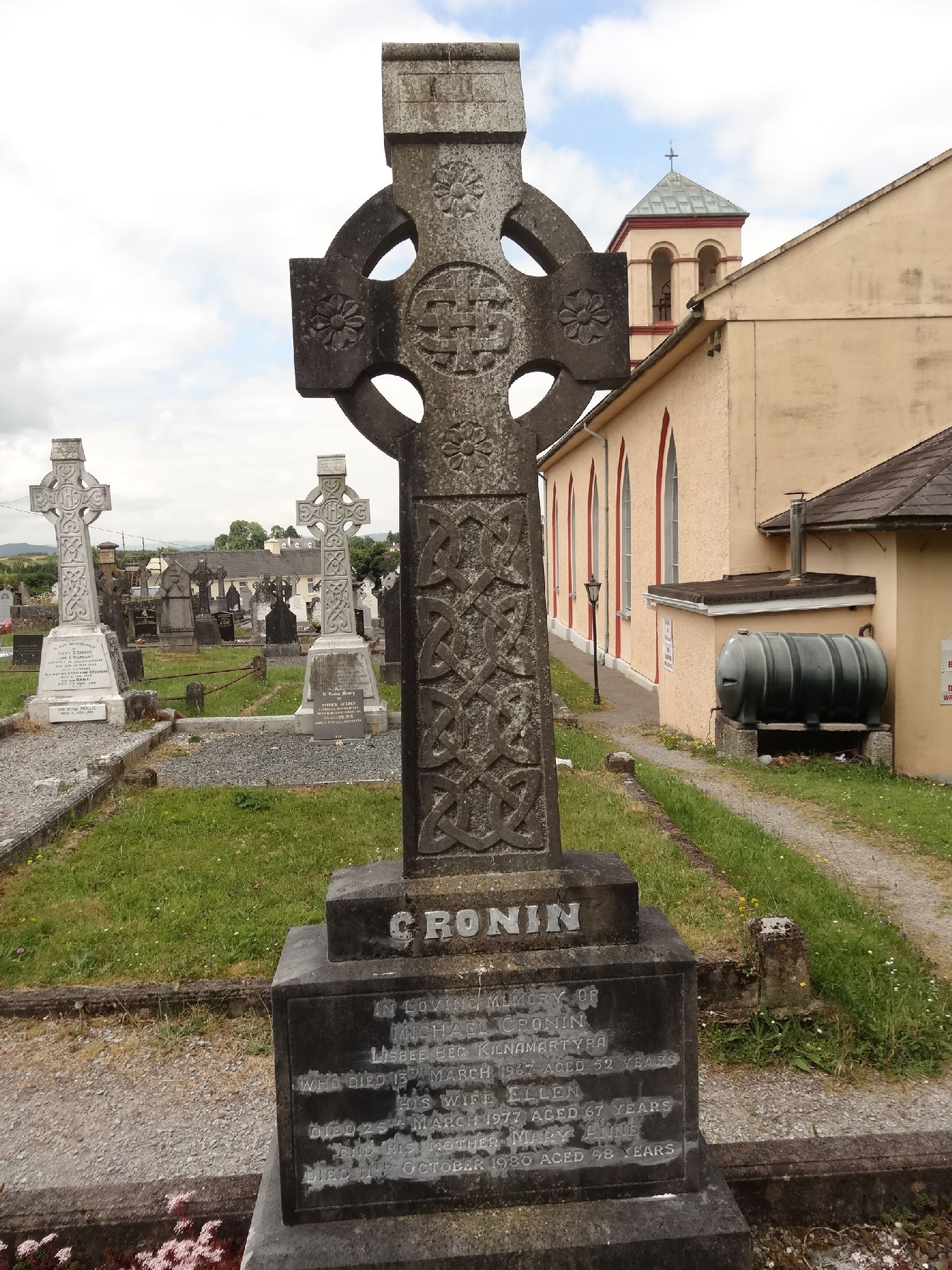 In Loving Memory of MICHAEL CRONIN Lisbee Beg, Kilnamartyra who died 13th March 1967 aged 52 years His wife ELLEN died 25th March 1977 aged 67 years and his Mother MARY ANNE died 11th October 1980 aged 98 years Rest in Peace