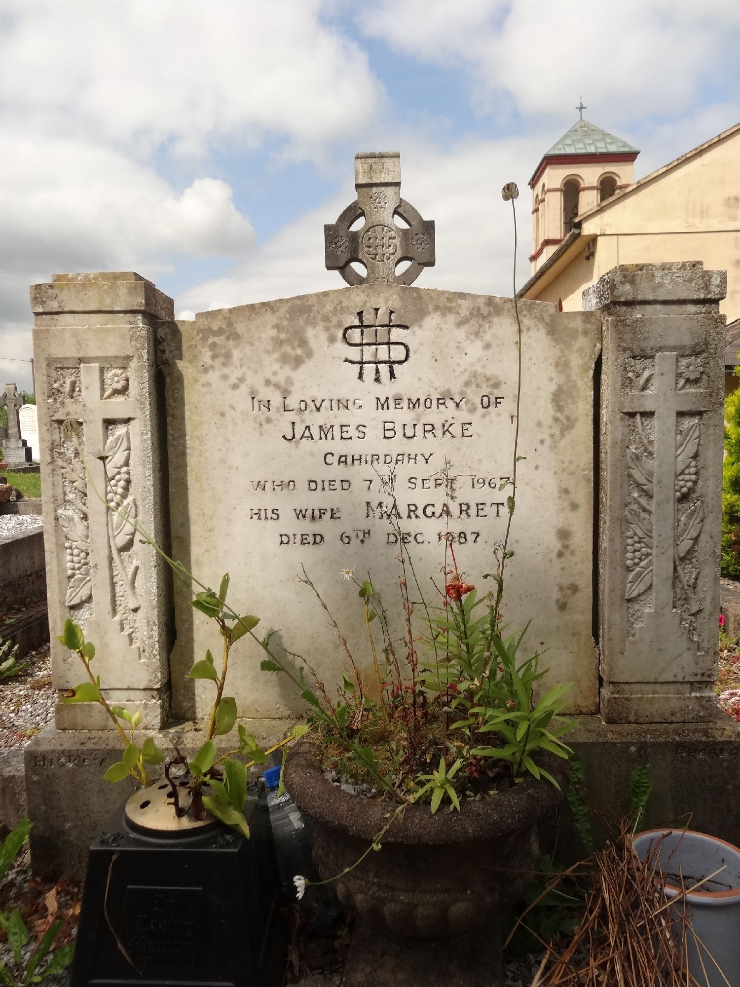 In Loving Memory of JAMES BURKECahirdahywho died 7th Sept. 1967His wife MARGARETdied 6th Dec. 1987R.I.P.
