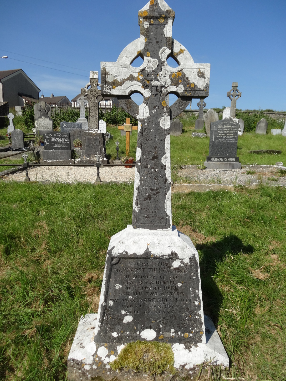 Erected by Margaret Tully, ???, in memory of her father & motherHer brother Joseph and her two sistersThe above Margaret Tully died 25th Jan 19?? aged 88 yearsÂ