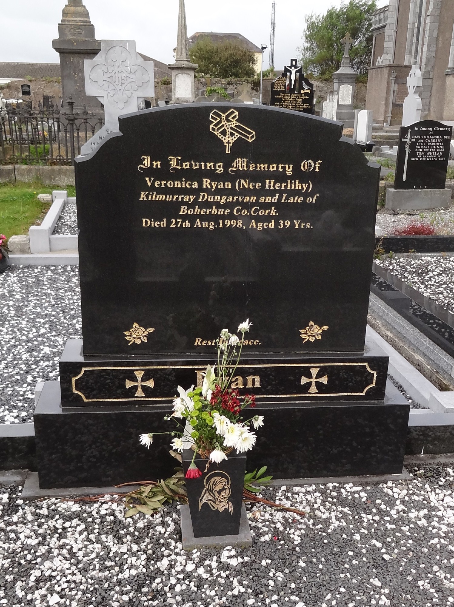 In Loving Memory Of Veronica Ryan (Nee Herlihy) Kilmurray Dungarvan and Late Of Boherbue Co. Cork. Died 27th Aug. 1998, Aged 39 Yrs.