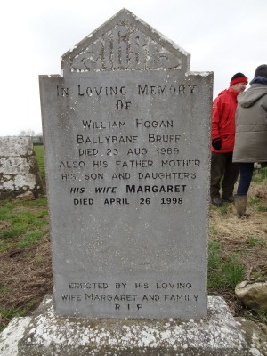 IN LOVING MEMORYOFWILLIAM HOGANBALLYBANE BRUFFDIED 23 AUG 1969ALSO HIS FATHER MOTHERHIS SON AND DAUGHTERSHIS WIFE MARGARETDIED APRIL 26 1998ERECTED BY HIS LOVING WIFE MARGARET AND FAMILYR.I.P.HOGAN