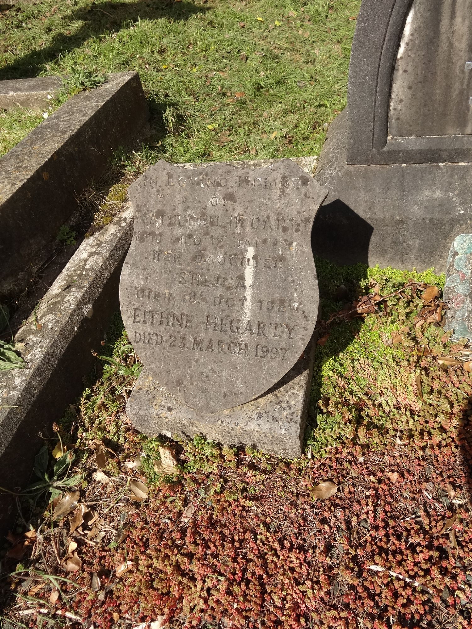 IN LOVING MEMORYOFKATHLEEN HEGARTYWHO DIED 12TH JAN 1959HER DAUGHTERSHEILADIED 15TH OCT 1984EITHNE HEGARTYDIED 23 MARCH 1997