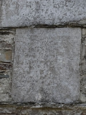 Here to Lyeth the Body ofJane Williams her **** sonsThomas & WilliamWife to Thomas Williamsof Kinsle BurgessThis life the ** of **1747 in the 53 year of herage