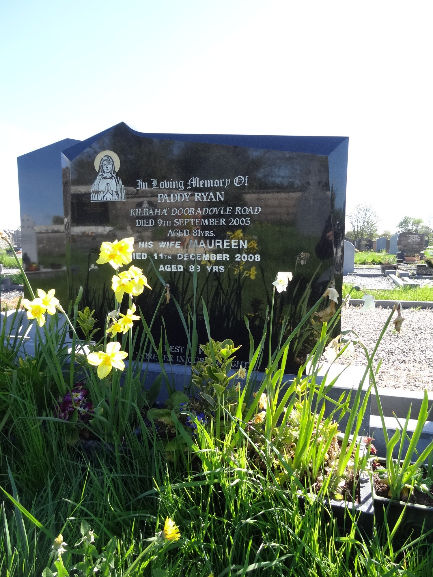 In Loving Memory OfPADDY RYAN"Kilbaha" Dooradoyle RoadDied 9TH September 2003Aged 81Yrs. His Wife MAUREENDied 11TH December 2008Aged 88 Yrs