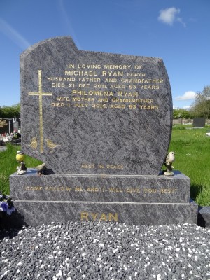 In Loving Memory OfMICHAEL RYAN RaheenHusband, Father And GrandfatherDied 21. Dec. 2011, Aged 83 Years.PHILOMENA RYANWife, Mother And GrandmotherDied 1. July 2014, Aged 83 Years.