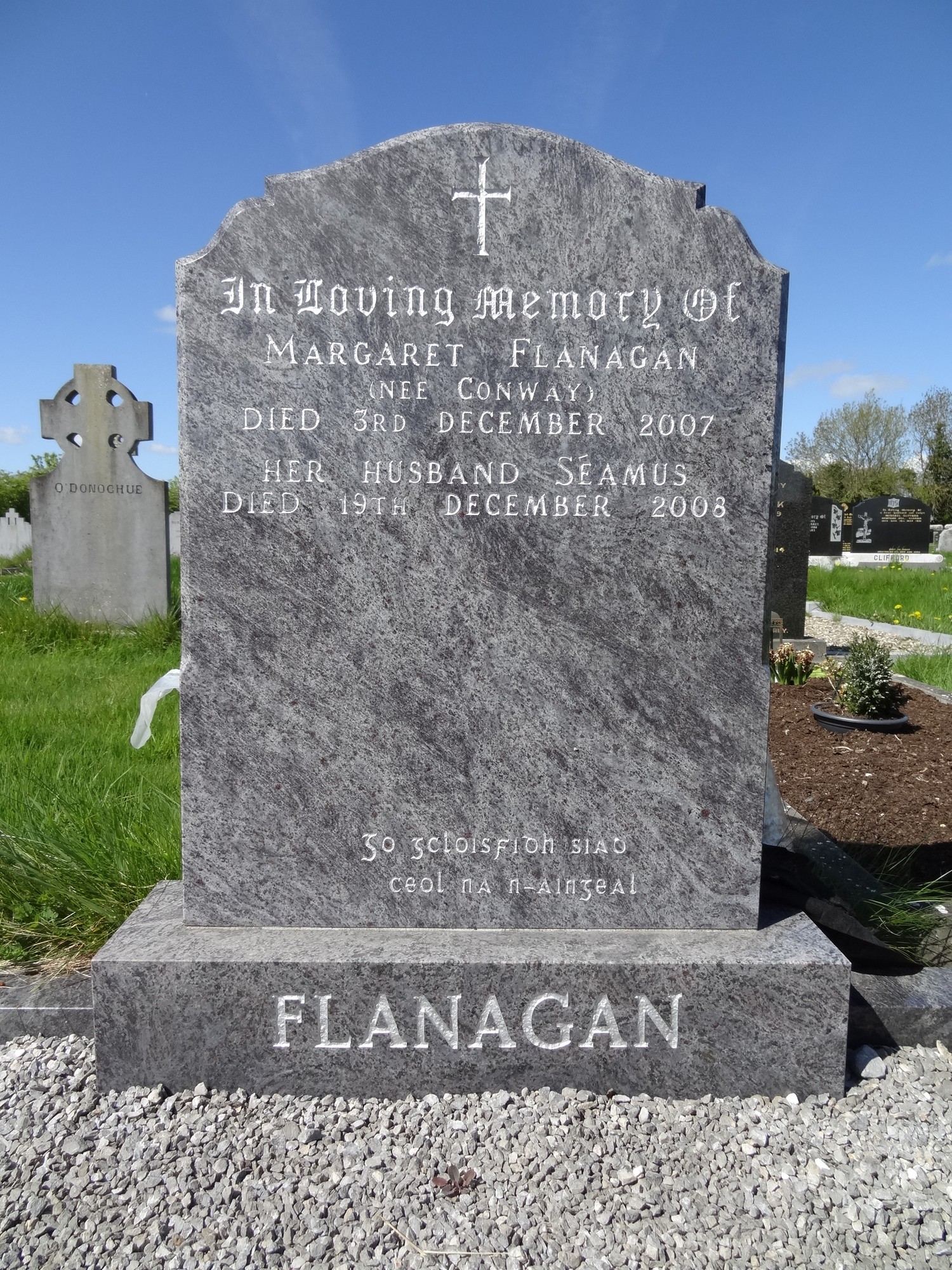 In Loving Memory OfMARGARET FLANAGAN(NEE CONWAY)Died 3RD December 2007Her Husband SÉAMUSDied 19TH December 2008