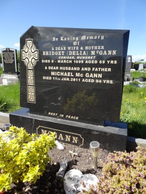 In Loving MemoryOfA Dear Wife & MotherBRIDGET (DELIA) Mc GANNConigar, MungretDied 8 - March 1999 Aged 69 YrsA Dear Husband And Father MICHAEL Mc GANNDied 11TH Jan. 2011 Aged 94 Yrs.