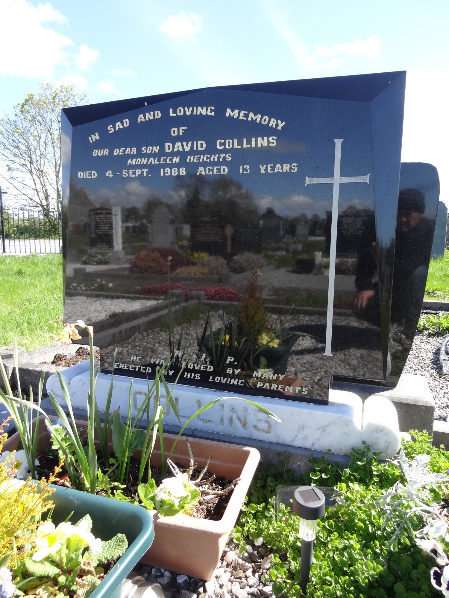 In Sad And Loving MemoryOfOur Dear Son DAVID COLLINSMonaleen HeightsDied 4 - Sept. 1988 Aged 13 Years
