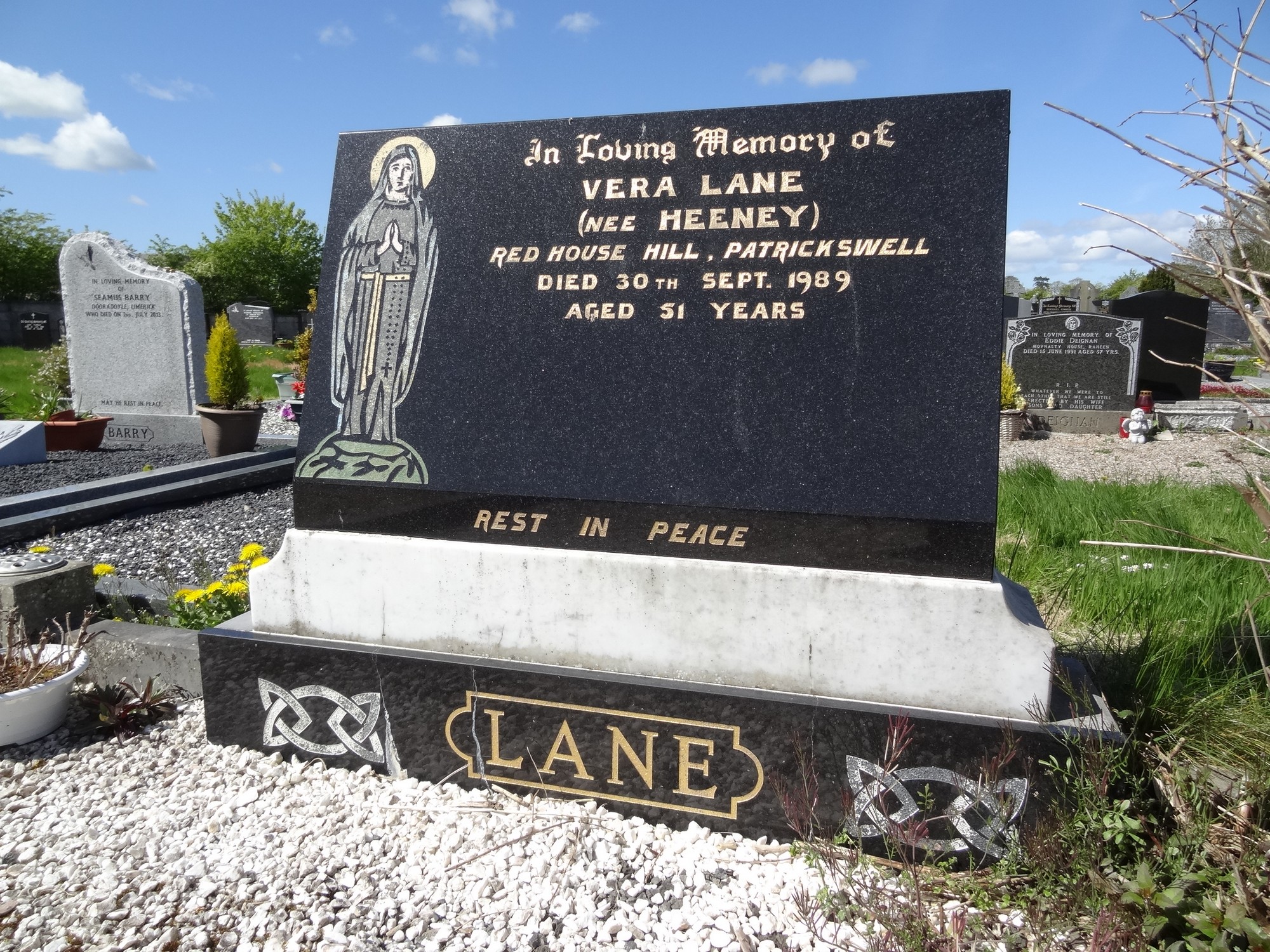 In Loving Memory ofVERA LANE(NEE HEENEY)Red House Hill, PatrickswellDied 30TH Sept. 1989Aged 51 Years
