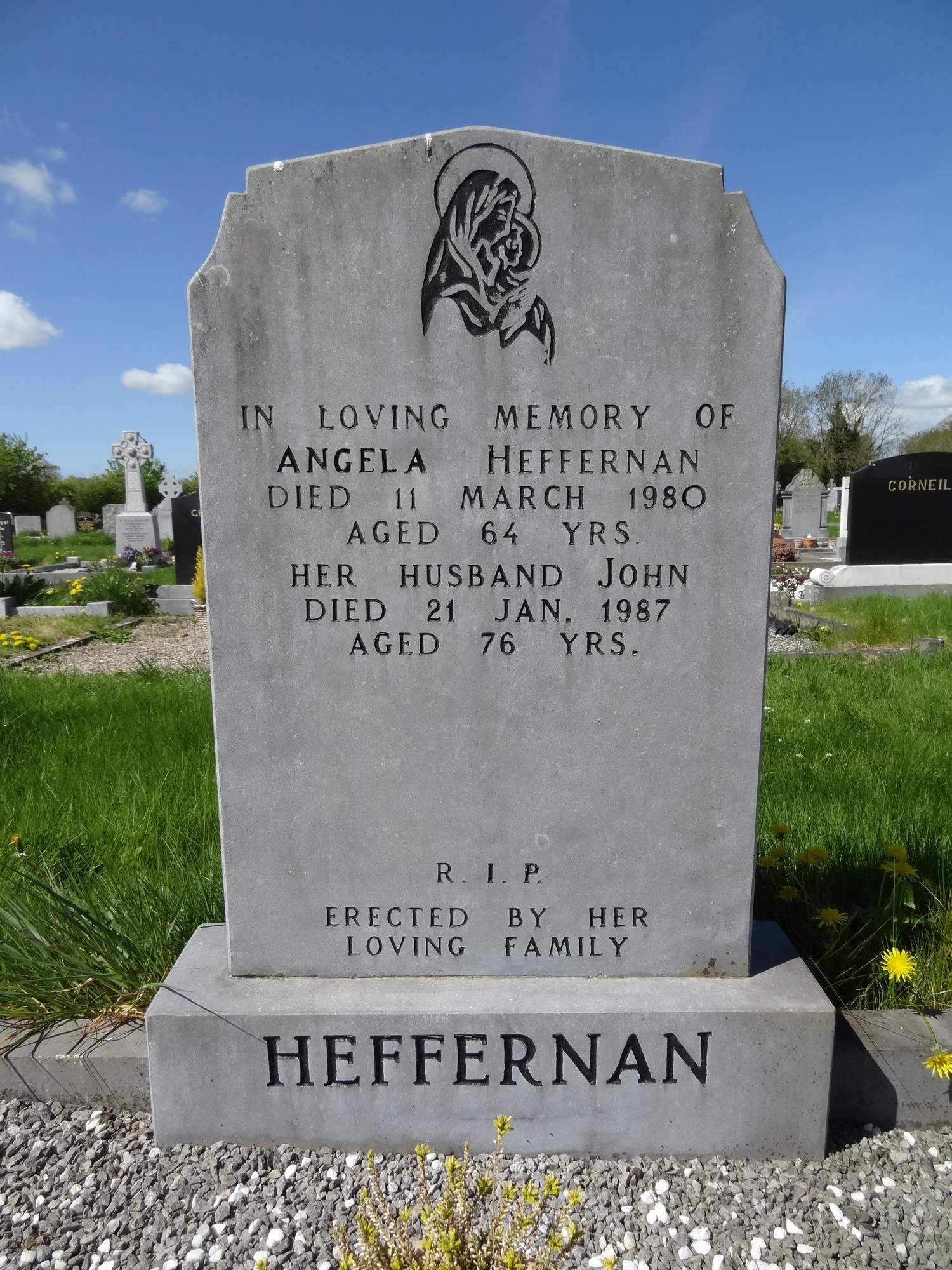 In Loving Memory OfANGELA HEFFERNANDied 11 March 1980Aged 64 YrsHer Husband JOHNDied 21 Jan. 1987Aged 76 Yrs.