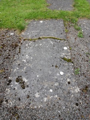 A large Rect. R.S. bearing an Inc'd. Ins.. The date and names are in Italics. Above the inscription is a coat of arms which is cut in low false relief. The arms are three rosettes, with, in chief, an antlered deer head. The arms are surrounded by foliate mantling. The motto "FIDELI ET AMCIVIS" is incised in an upturned bow-shaped configuration below the arms. See also No. 20 for Richard Mathews.