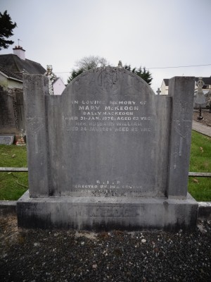 IN LOVING MEMORY OF MARY Mc KEOGH BALLYMACKEOGH DIED 31-JAN 1976. AGED 63 YRS HER HUSBAND WILLIAM DIED 24-JAN 1989 AGED 85 YRS