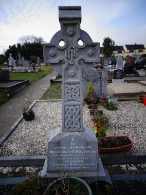 IN LOVING MEMORY OF MRS SARAH O'HALLORAN STATION HOUSE, CASTLECONNELL DIED 3RD FEB. 1967 HER HUSBAND THOMAS O'HALLORAN DIED 6TH AUGUST 1977