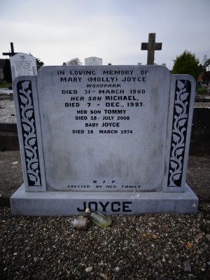 IN LOVING MEMORY OF MARY (MOLLY) JOYCE WOODPARK DIED 31-MARCH 1980 HER SON MICHAEL DIED 7-DEC> 1987 HER SON TOMMY DIED 18-JULY 2008 BABY JOYCE DIED 18 MARCH 1974