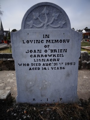 In Loving Memory of Joan O'Brien Carrowkeel Lisnagry who died Aug' 31st 1953 Aged 14 1/2 years R.I.P.