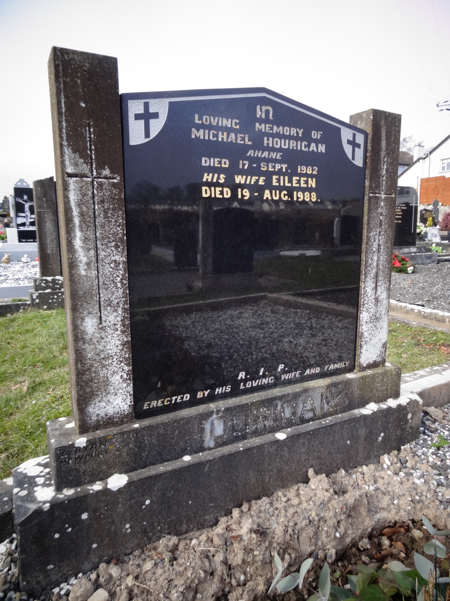 IN LOVING MEMORY OF MICHAEL HOURIGAN AHANE DIED 17 - SEPT. 1982 HIS WIFE EILEEN DIED 19 - AUG. 1988. R.I.P. ERECTED BY HIS LOVING WIFE AND FAMILY HOURIGAN