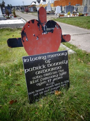 IN LOVING MEMORY OF PATRICK DONNELLY ARDVARNA WHO DIED ON THE 21ST FEBRUARY 1985 AGED 77 R.I.P. WE HAVE LOVED HIM IN LIFE LET US NOT FORGET HIM IN DEATH HENRY, PAT, REBECCA.
