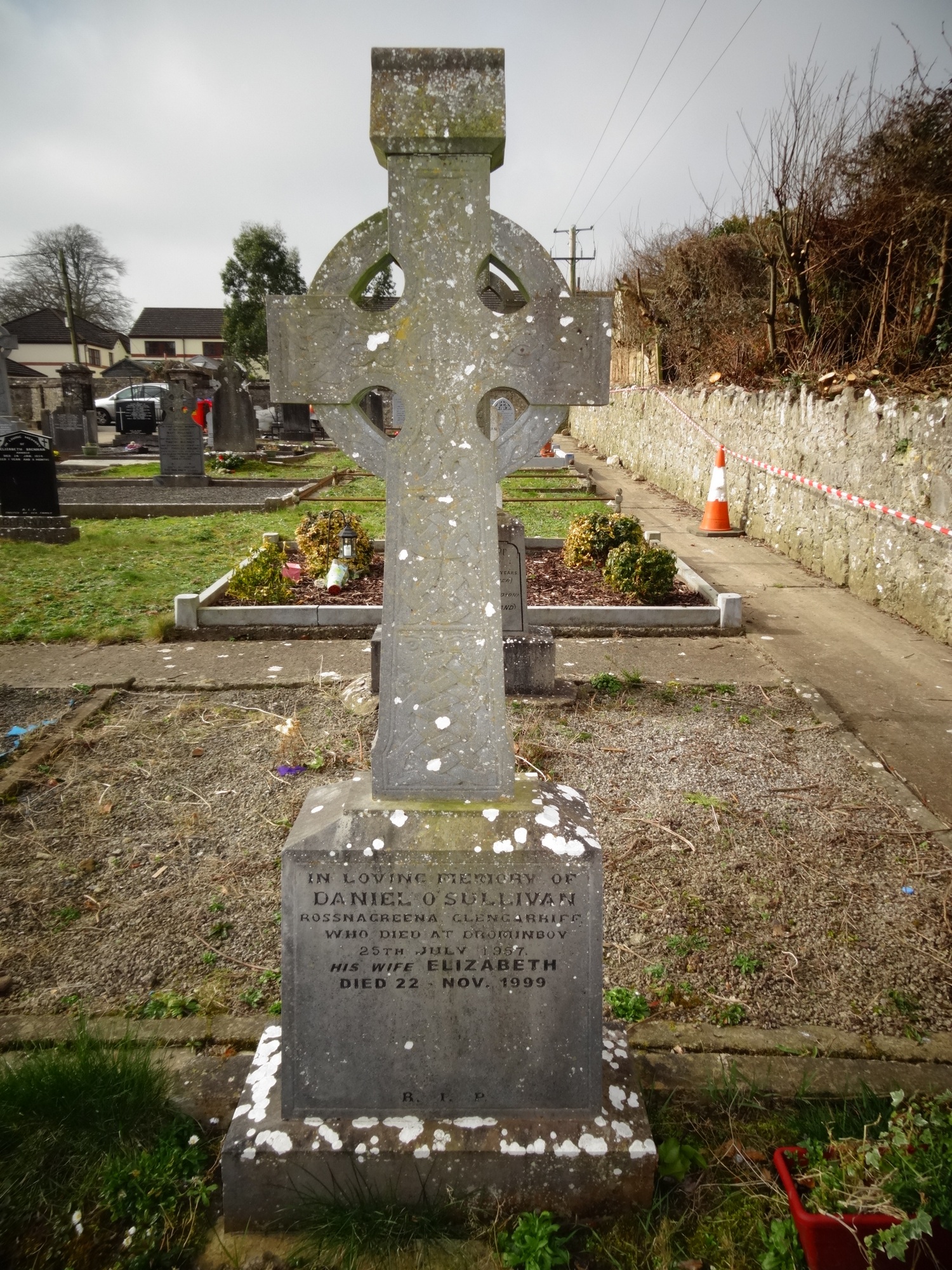 In loving memory of Daniel O'Sullivan Rossnagreena Glengarriff who died at Drominboy 25th July 1957. his wife Elizabeth died 22-Nov, 1999