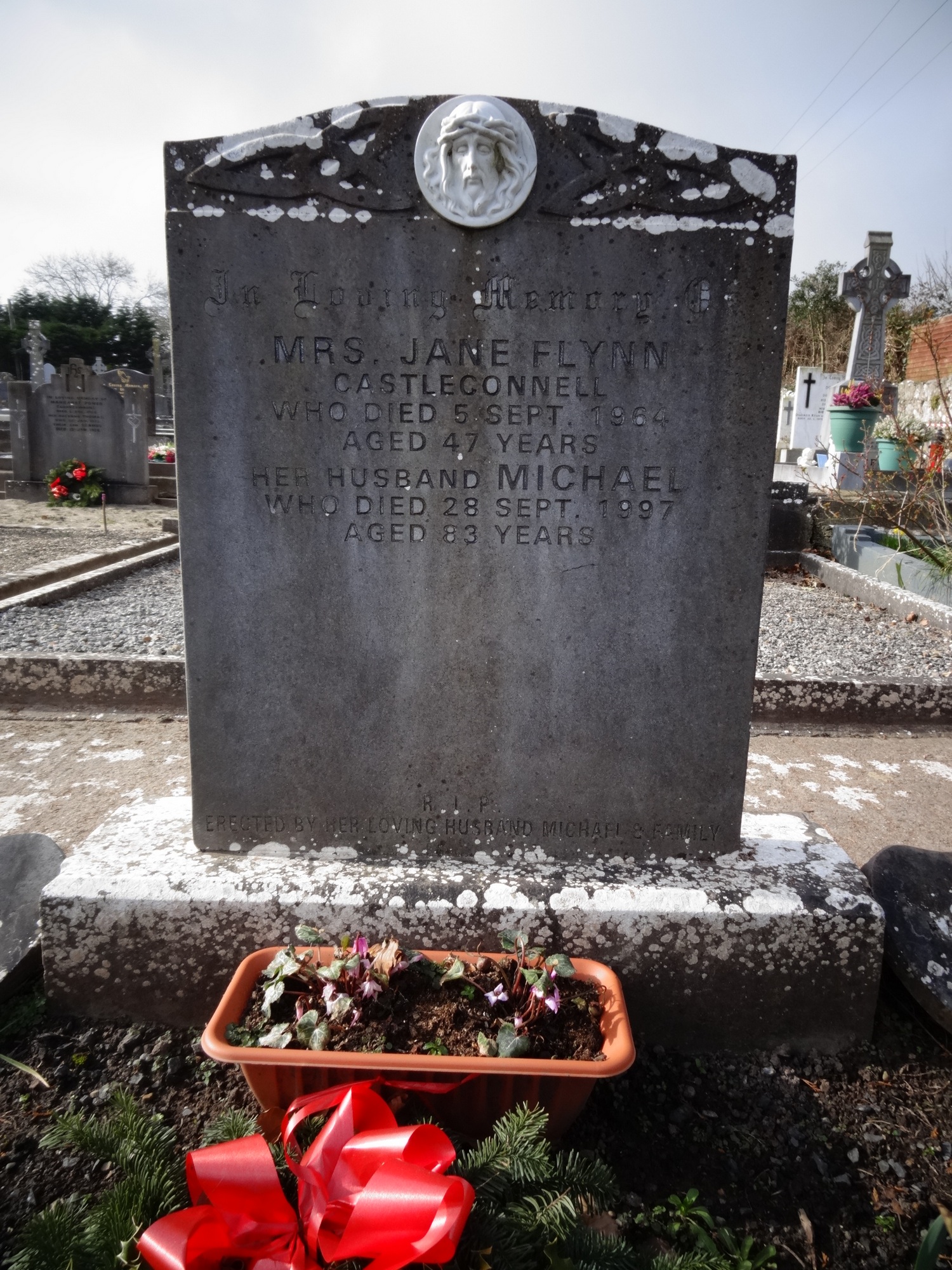 In loving memory of Mrs. Jane Flynn Castleconnell who died 5 Sept 1964 aged 47 years her husband Michael who died 28 Sept. 1997 aged 83 years