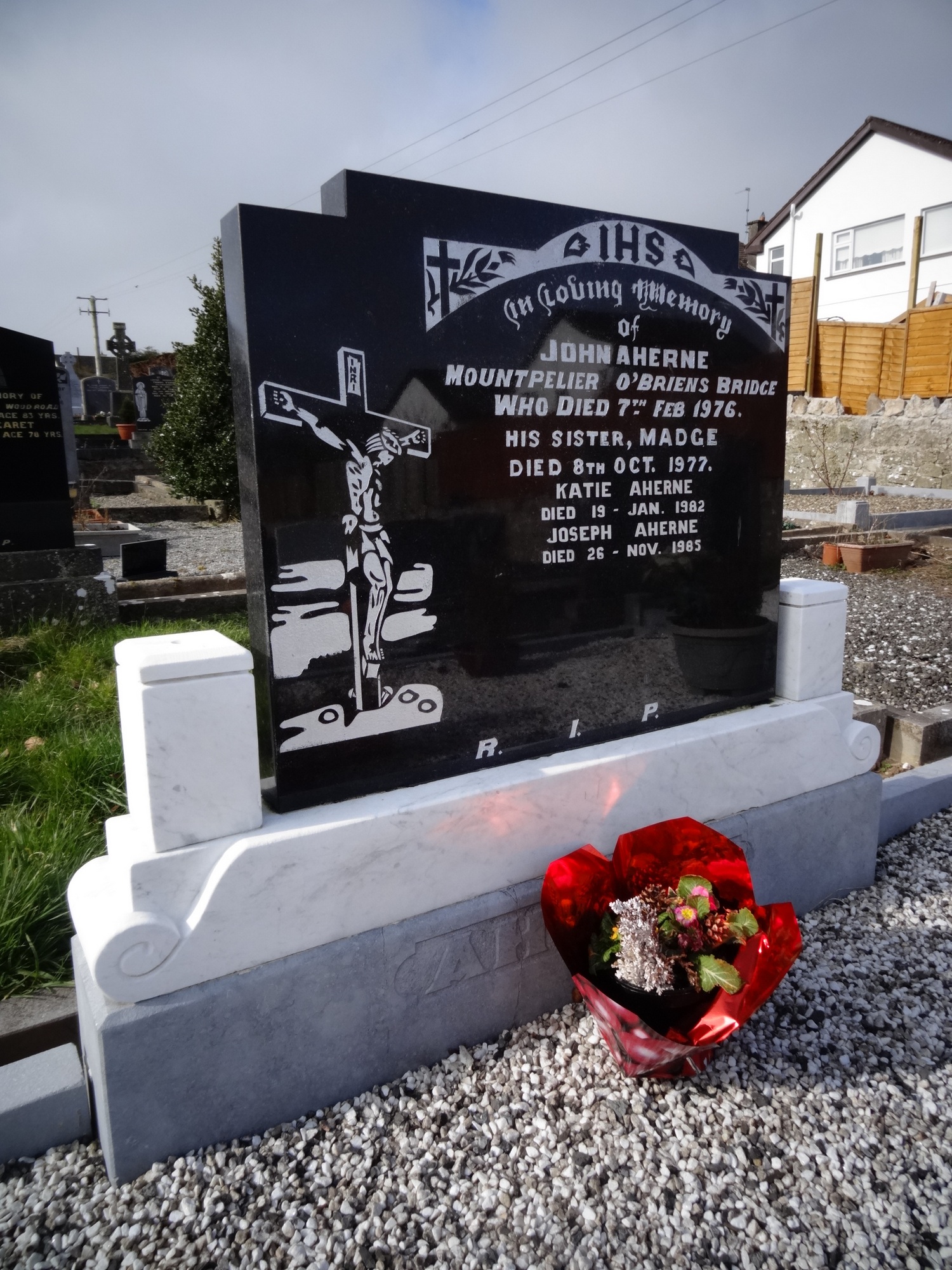 IN LOVING MEMORY OF JOHN AHERNE MONTPELIER, O' BRIENS BRIDGE WHO DIED 7th FEB. 1976 HIS SISTER MADGE DIED 8th OCT. 1977 KATIE AHERNE DIED 19-JAN. 1982 JOSEPH AHERNE DIED 26-NOV. 1985