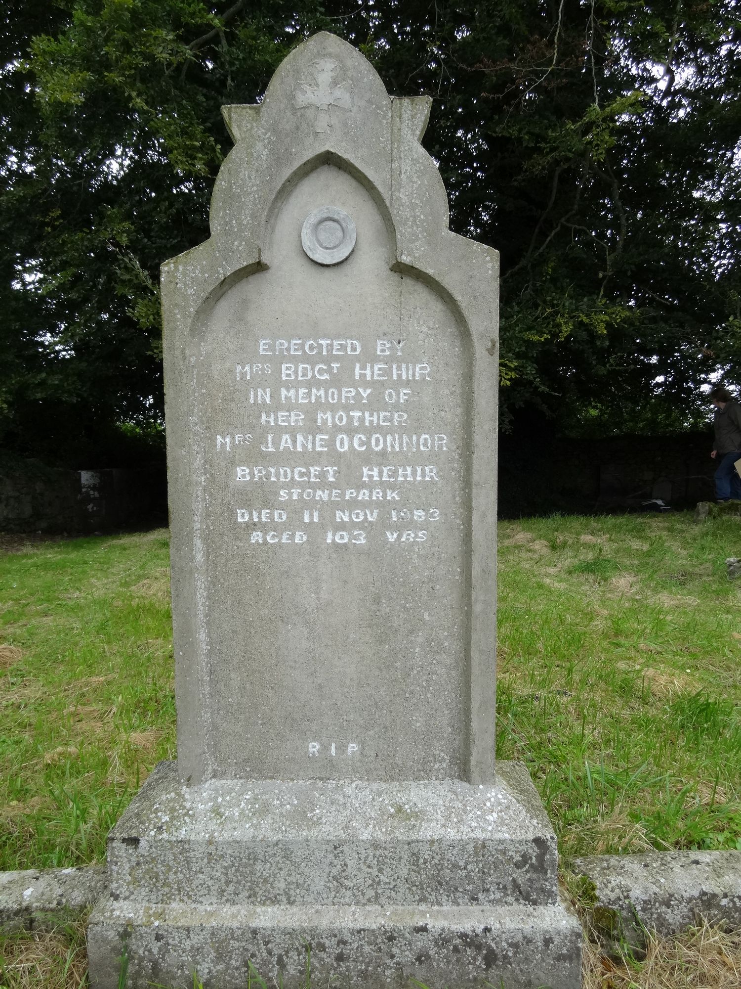 ERECTED BY MRS BDGt HEHIR IN MEMORY OF HER MOTHER Mrs JANE O CONNOR BRIDGET HEHIR STONEPARK DIED 11 NOV 1983 AGED 103 YRS RIP