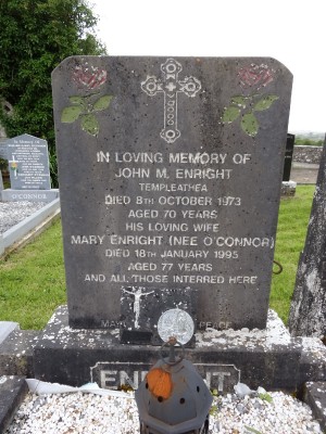 In Loving Memory OfJOHN M. ENRIGHTTempleatheaDied 8TH October 1973Aged 70 YearsHis Loving WifeMARY ENRIGHT ( Nee O'CONNOR)Died 18TH January 1995Aged 77 YearsAnd Whose Interred Here
