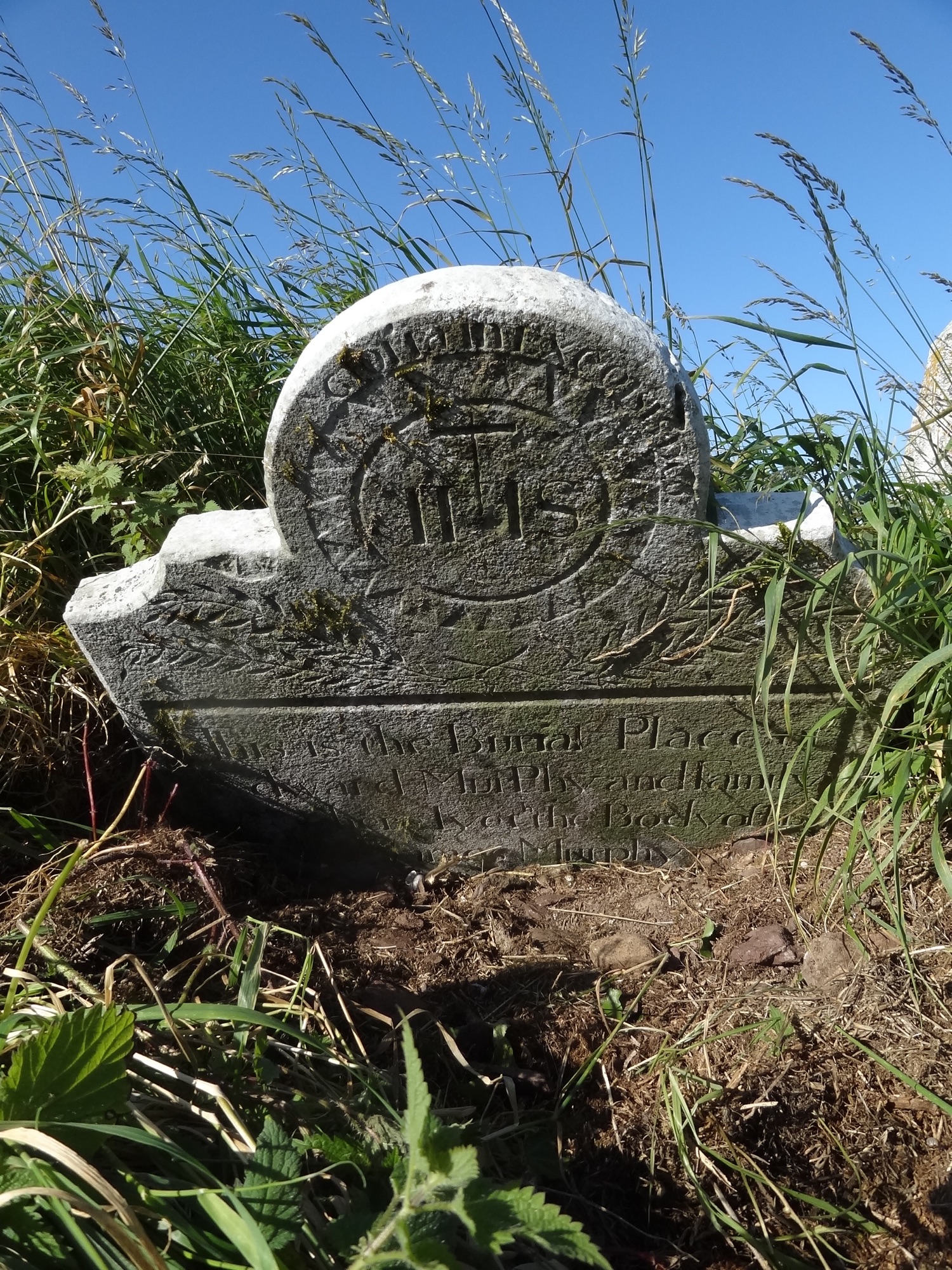 Headstone partly buried